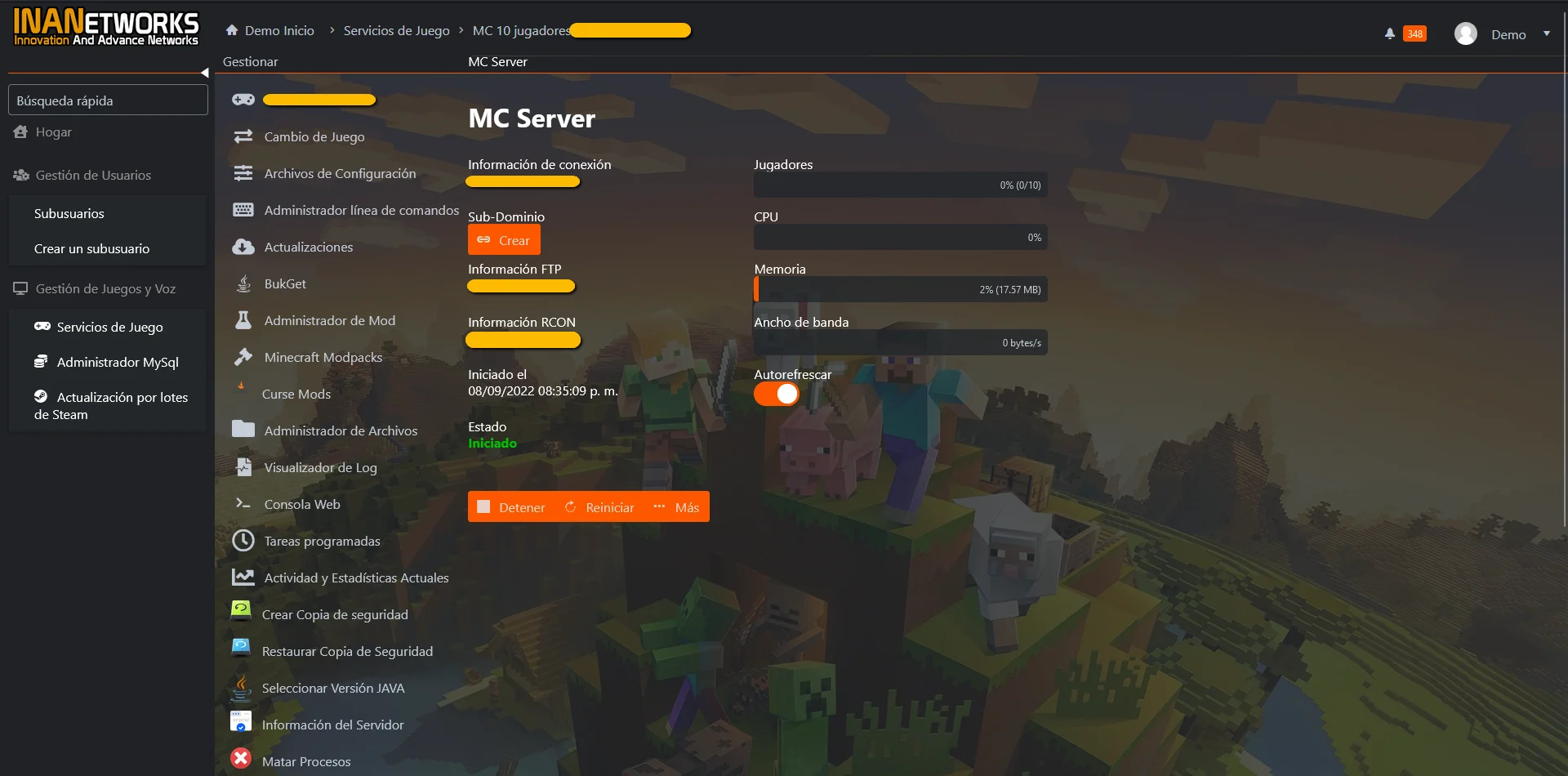 Company dedicated to hosting Game servers with more than 10 years of experience. We are INANetworks N°1 Spanish Speaking Host.